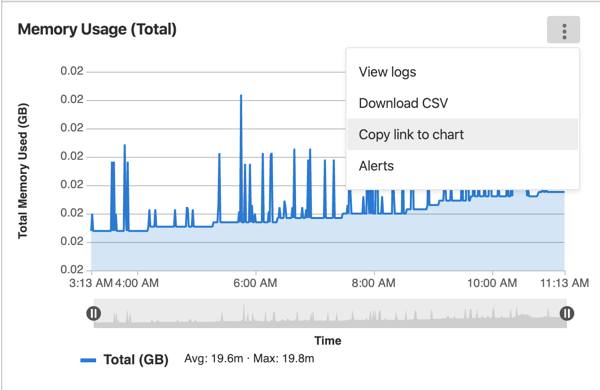 You can also embed a single chart. To get a link to a chart, select {ellipsis_v} More actions in the upper right corner of the chart, and select Copy link to chart, as shown in this example: