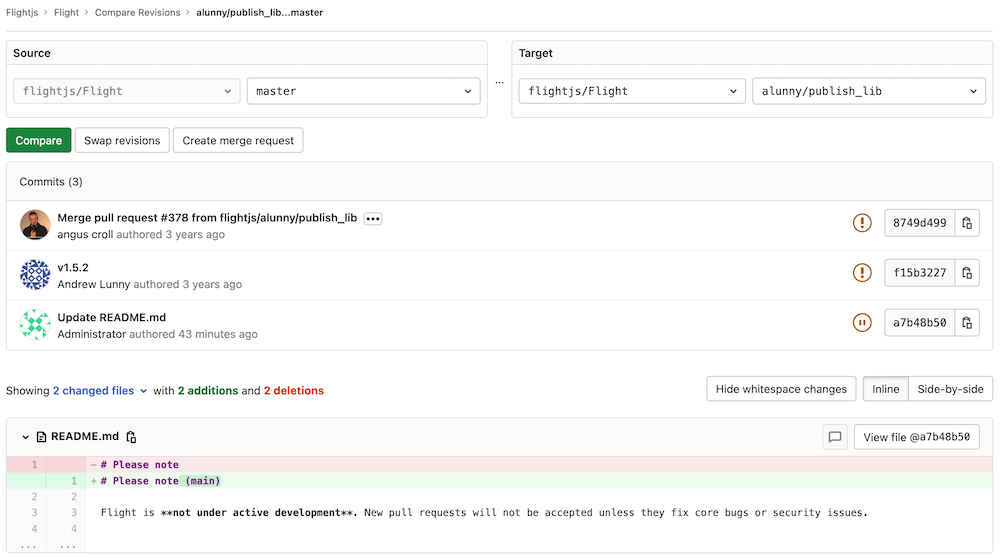 The Swap revisions feature allows you to swap the Source and Target revisions. When the Swap revisions button is clicked, the selected revisions for Source and Target is swapped.